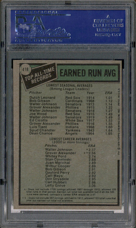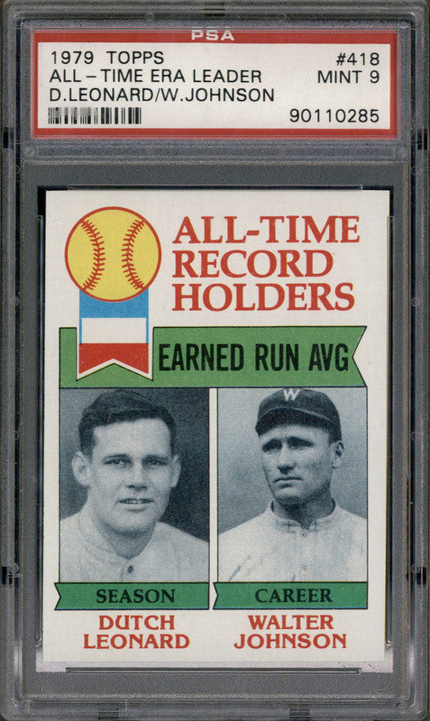 1979 Topps #418 All Time ERA Leader Dutch Leonard Walter Johnson PSA 9