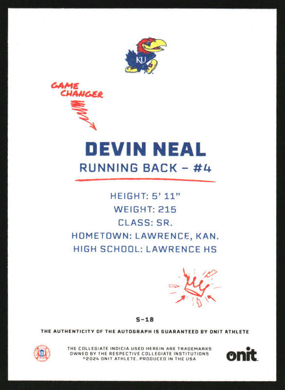 2024 ONIT Signatures Red #S18 Devin Neal Autograph Auto /220
