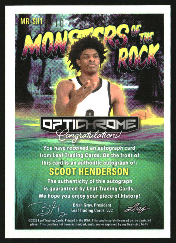 2023 Leaf Optichrome Monsters of the Rock Autograph Scoot Henderson Auto /10