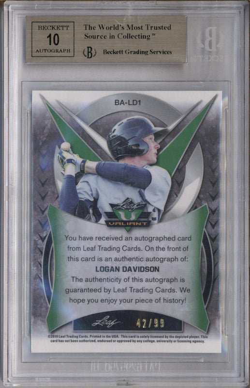 2019 Leaf Valiant Green Prismatic #BALD1 Logan Davidson Auto /99 BGS 9.5