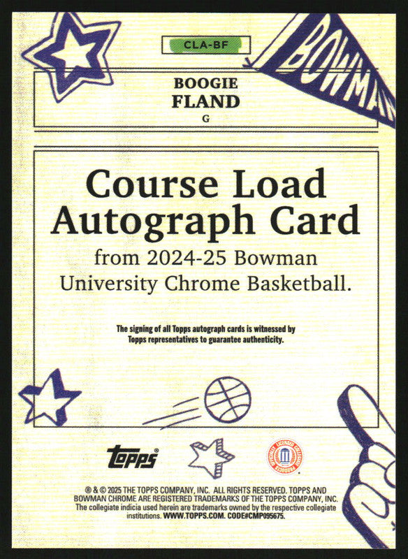 2024-25 Bowman University Chrome Course Load Autograph #CLA-BF Boogie Fland Auto