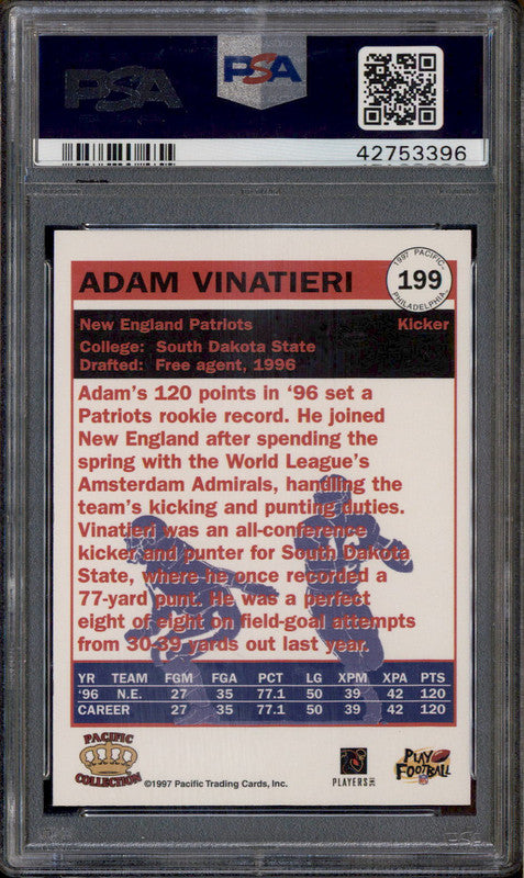 1997 Pacific Philadelphia #199 Adam Vinatieri PSA 9