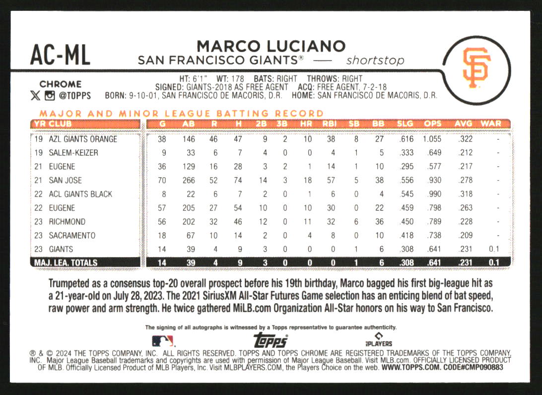 2024 Topps Chrome Update Black and White Mini-Diamond Marco Luciano RC Auto