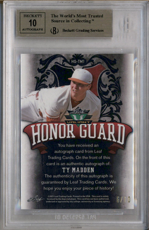 2021 Leaf Valiant Honor Guard Yellow Ty Madden Auto Autograph /10 BGS 9.5