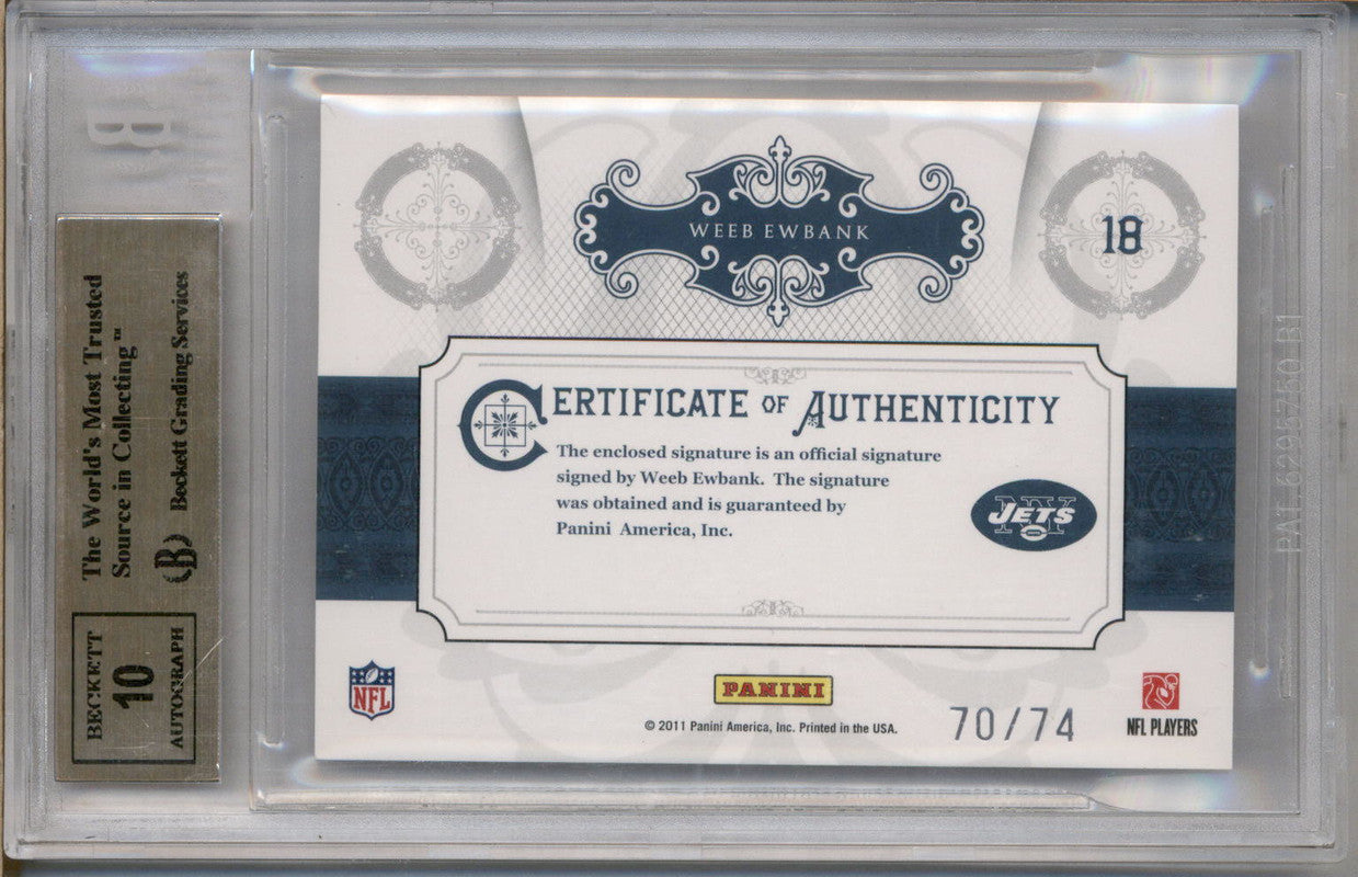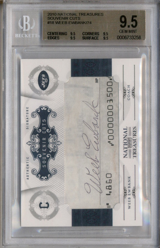 2010 National Treasures Souvenir Cuts Weeb Ewbank Autograph Auto /74 BGS 9.5