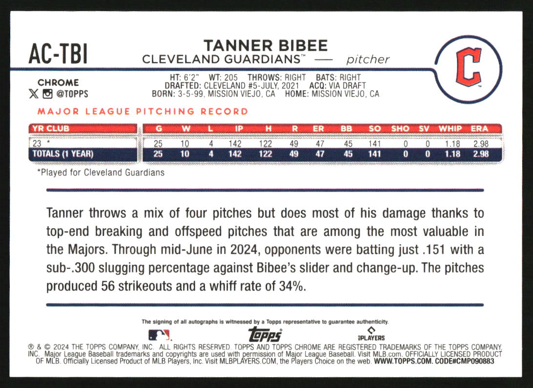 2024 Topps Chrome Update Autographs Gold Refractor #AC-TBI Tanner Bibee Auto /50