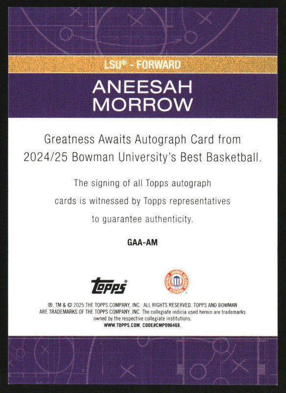 2024 Bowman's Best University Greatness Awaits Black Aneesah Morrow Auto /10