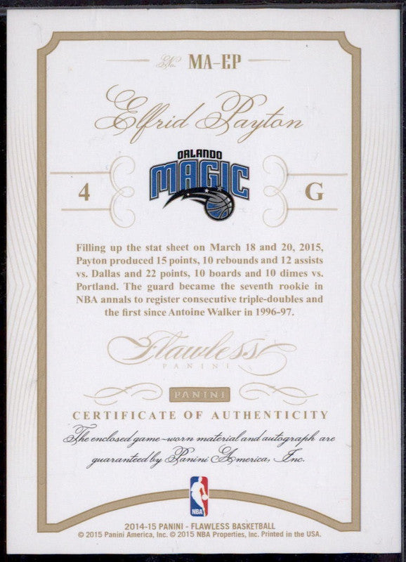 2014 Flawless Momentous Autographed Memorabilia Emerald Elfrid Payton RC Auto /5
