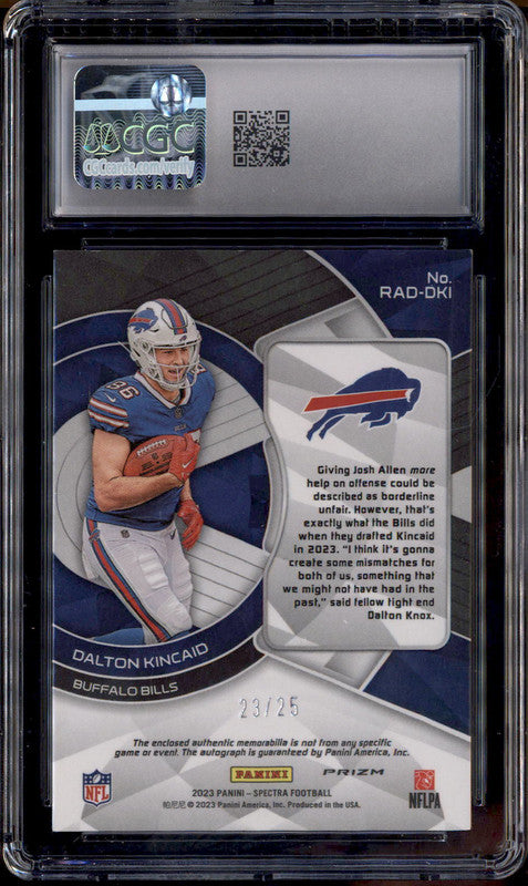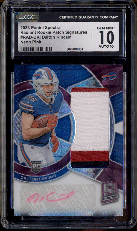 2023 Spectra Radiant Rookie Patch Auto Neon Pink Dalton Kincaid RC /25 CGC 10