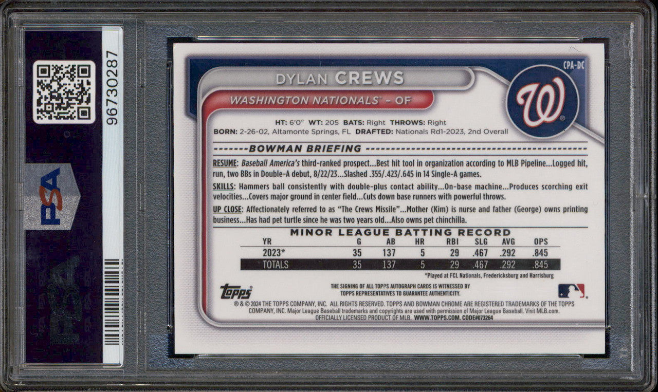 2024 Bowman Chrome Prospect Autograph HTA Choice Dylan Crews RC /150 PSA 8