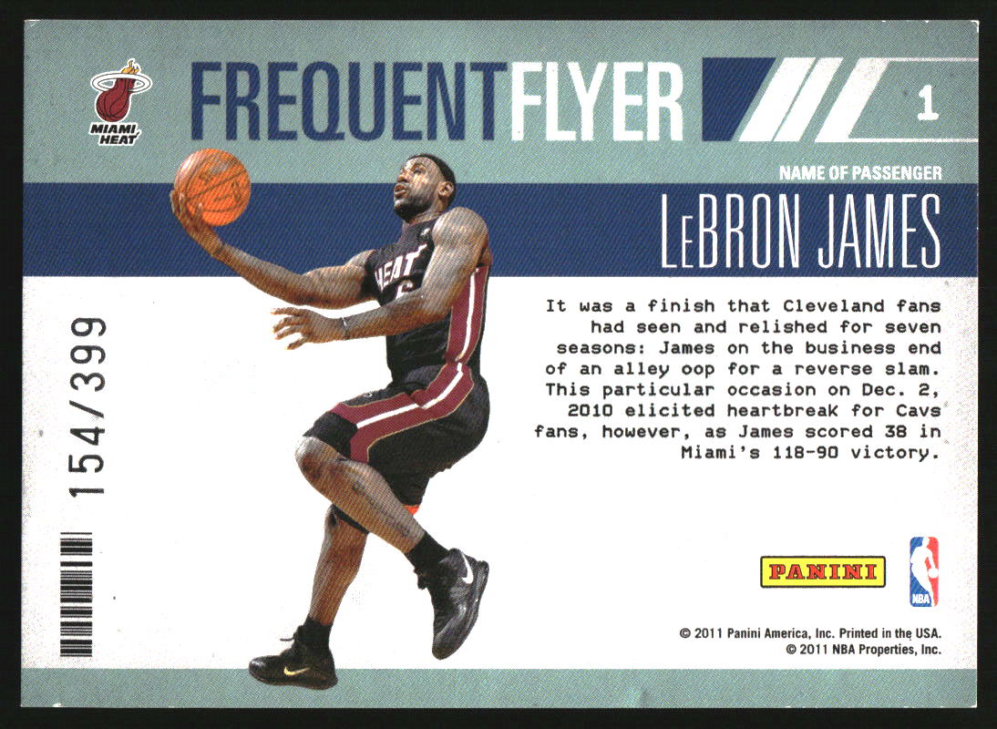 2010-11 Panini Absolute Memorabilia Frequent Flyer #1 LeBron James /399