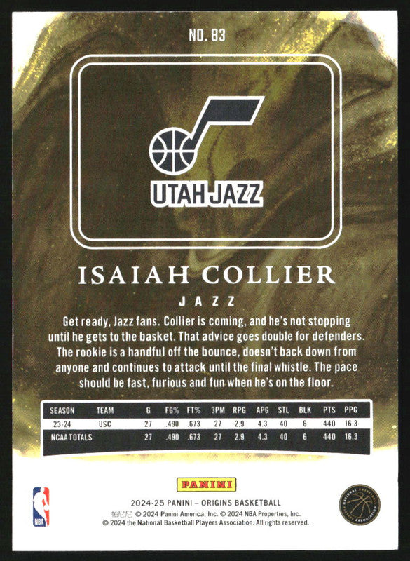 2024-25 Panini Origins Opal #83 Isaiah Collier RC /15