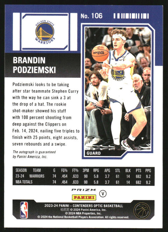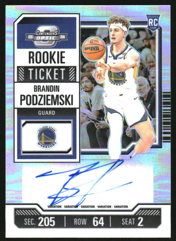 2023 Contenders Optic Rookie Ticket Silver Prizm #106 Brandin Podziemski RC Auto