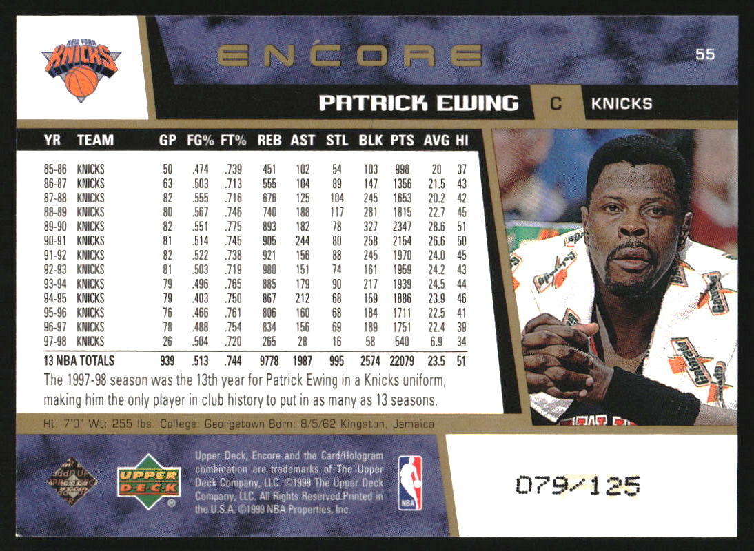 1998-99 Upper Deck Encore F/X #55 Patrick Ewing /125