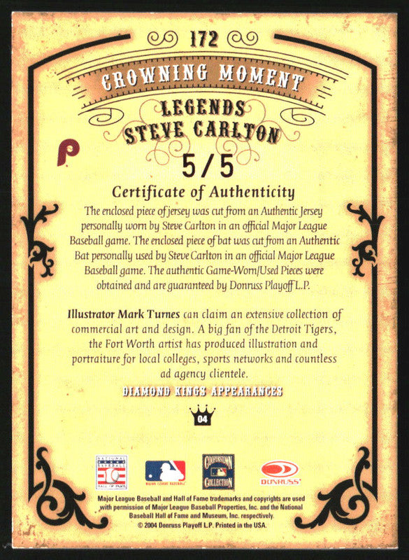 2004 Diamond Kings DK Combos Bronze #172 Steve Carlton Auto /5