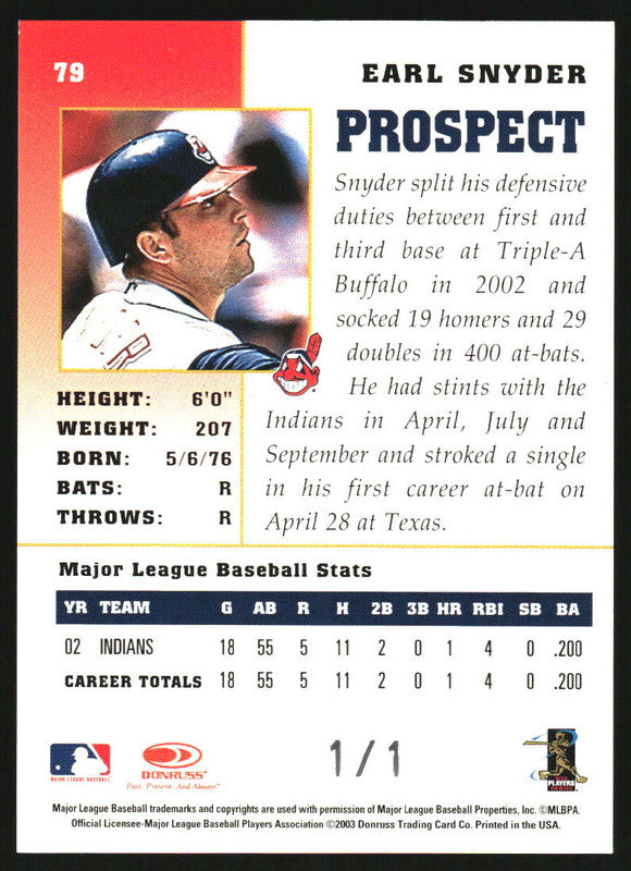 2003 Donruss Champions Autographs Notation #79 Earl Snyder Autograph Auto 1/1