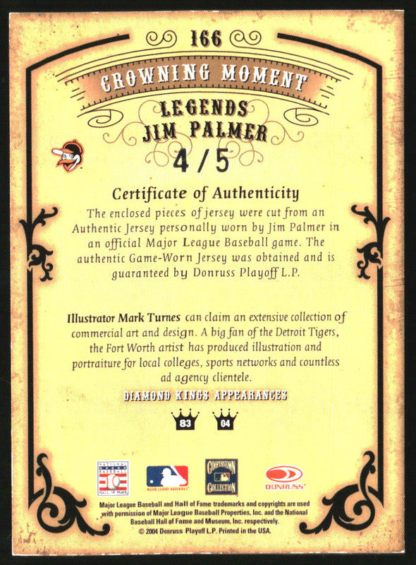 2004 Diamond Kings DK Combos Framed Silver Sepia #166 Jim Palmer /5