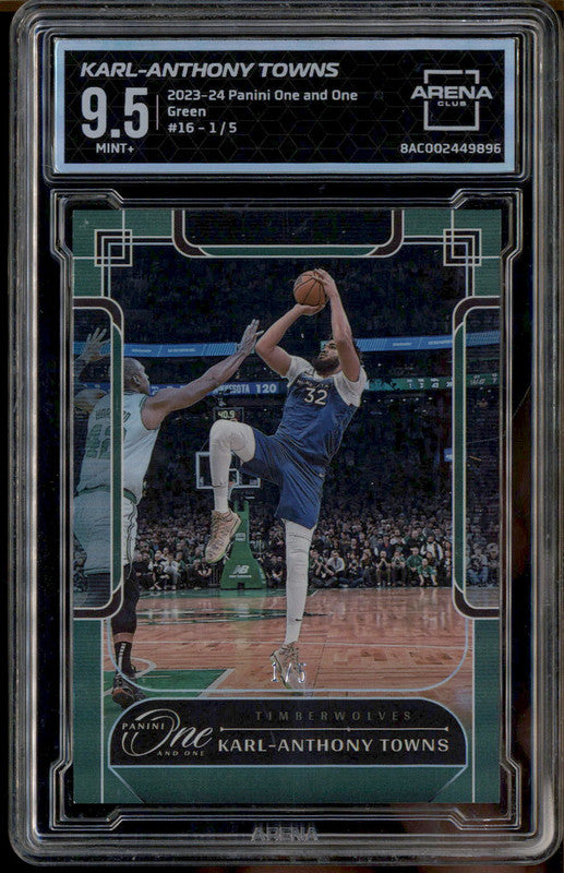 2023-24 Panini One and One Green #16 Karl-Anthony Towns /5 Arena Club 9.5