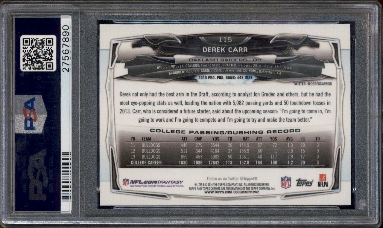2014 Topps Chrome With Ball #115 Derek Carr RC PSA 10