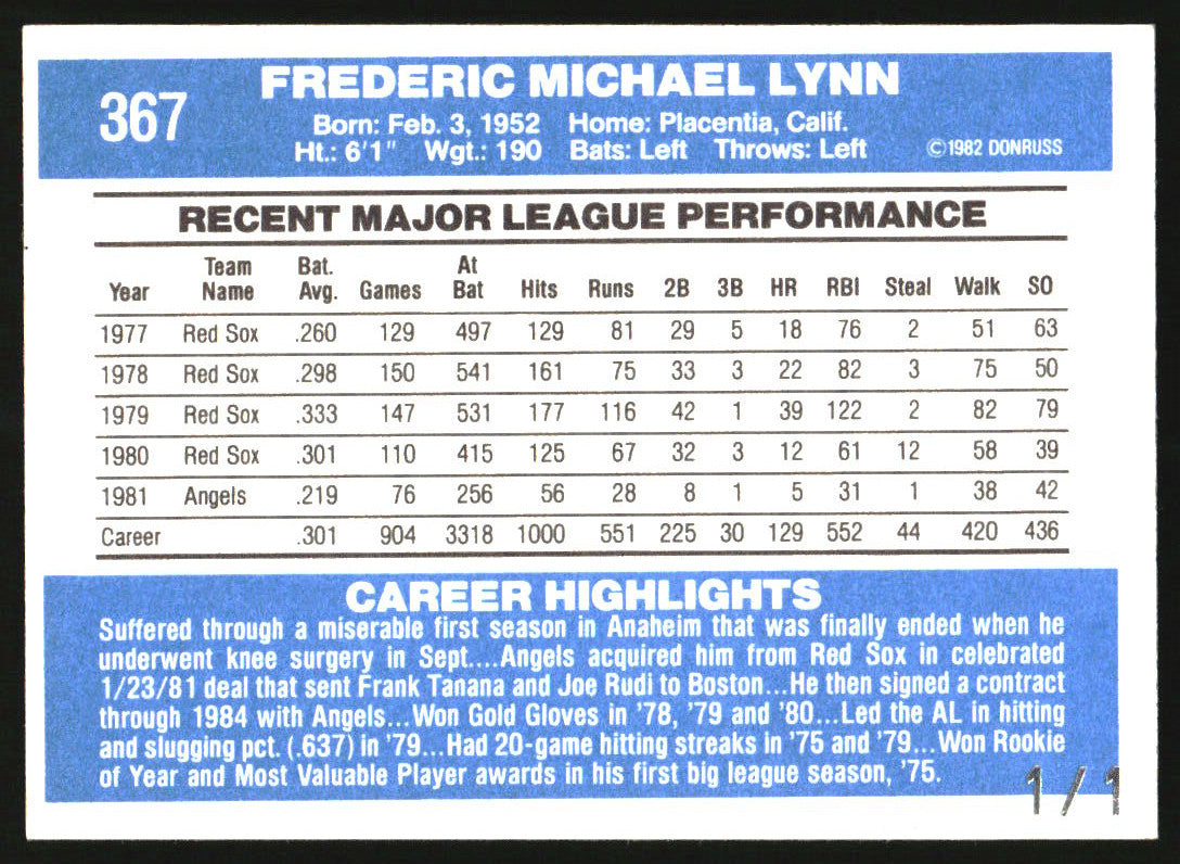 2002 Donruss Originals Recollection Collection Notation #34 Fred Lynn Auto 1/1