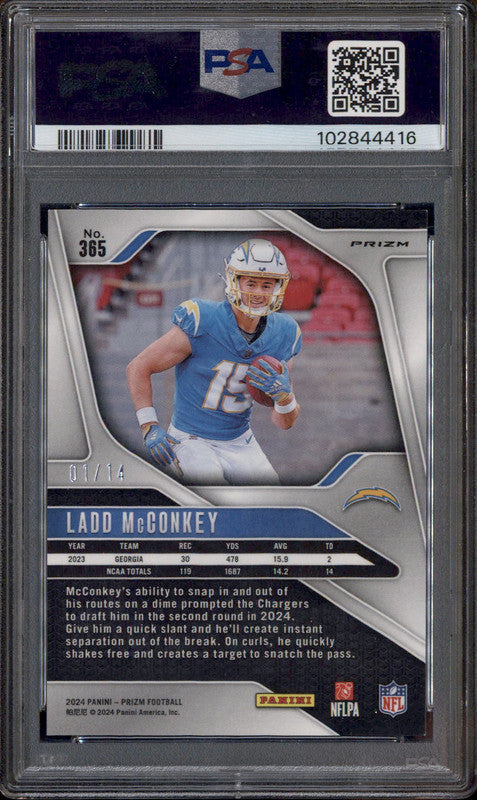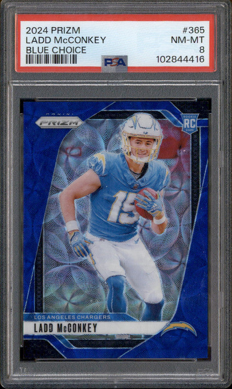 2024 Panini Prizm Blue Choice #365 Ladd Mcconkey RC /14 PSA 8