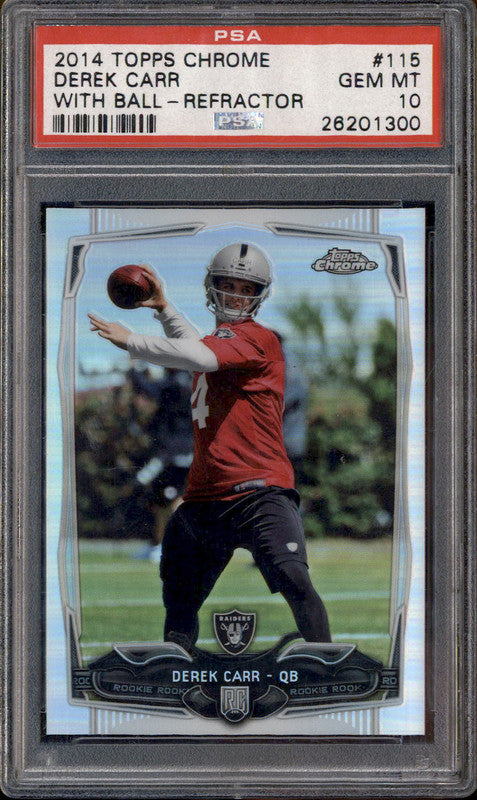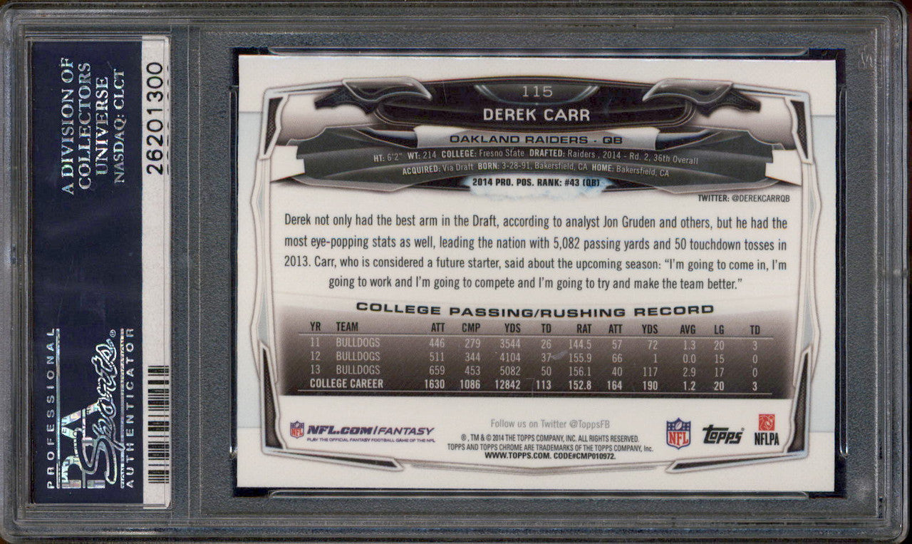 2014 Topps Chrome Refractor With Ball #115 Derek Carr RC PSA 10