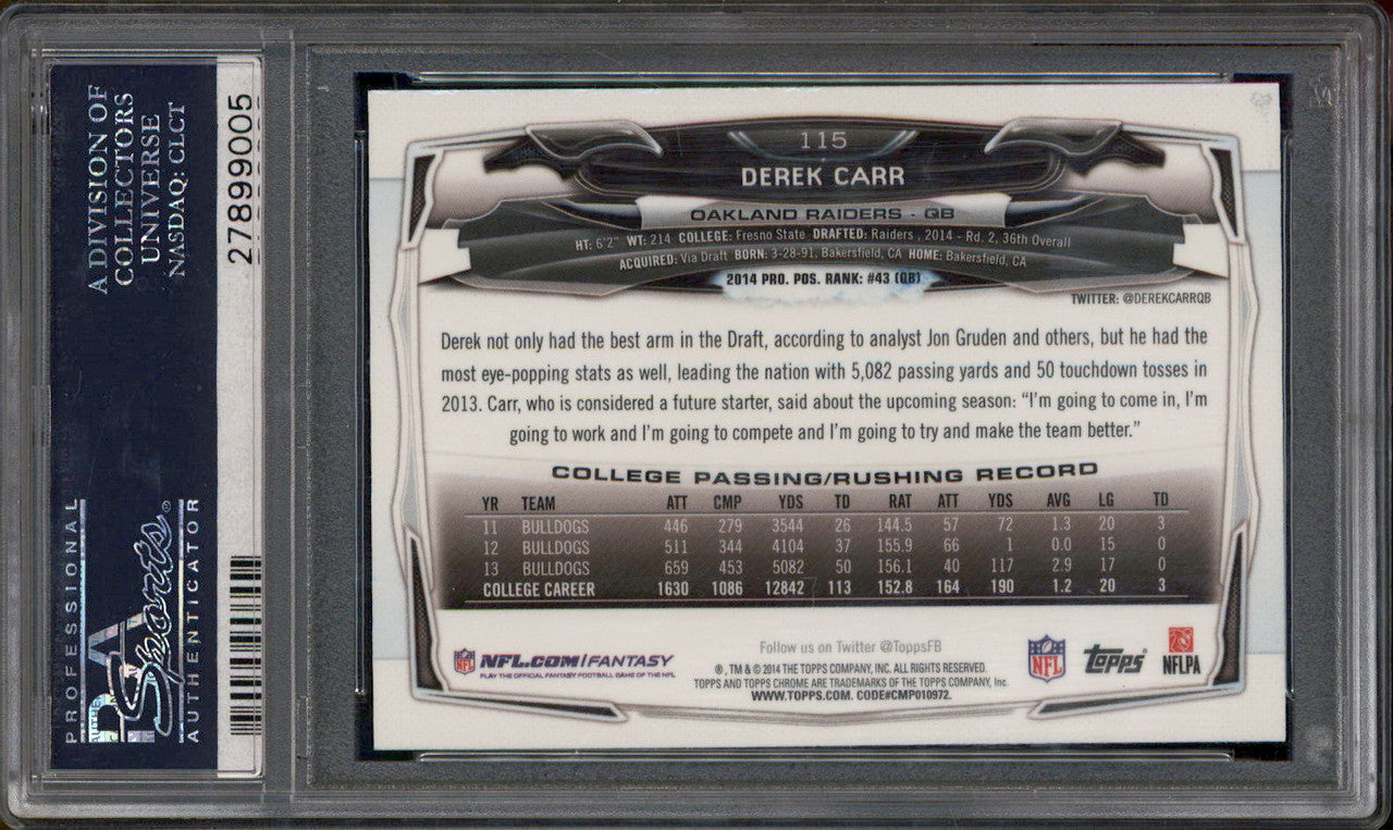 2014 Topps Chrome With Ball #115 Derek Carr RC PSA 10
