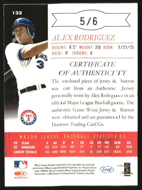 2003 Leaf Limited Threads Button #132 Alex Rodriguez /6