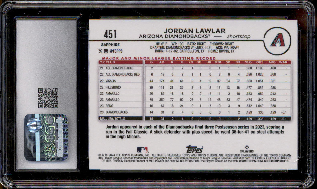 2024 Topps Chrome Sapphire Variation Gold #451 Jordan Lawlar RC /50 CGC 10