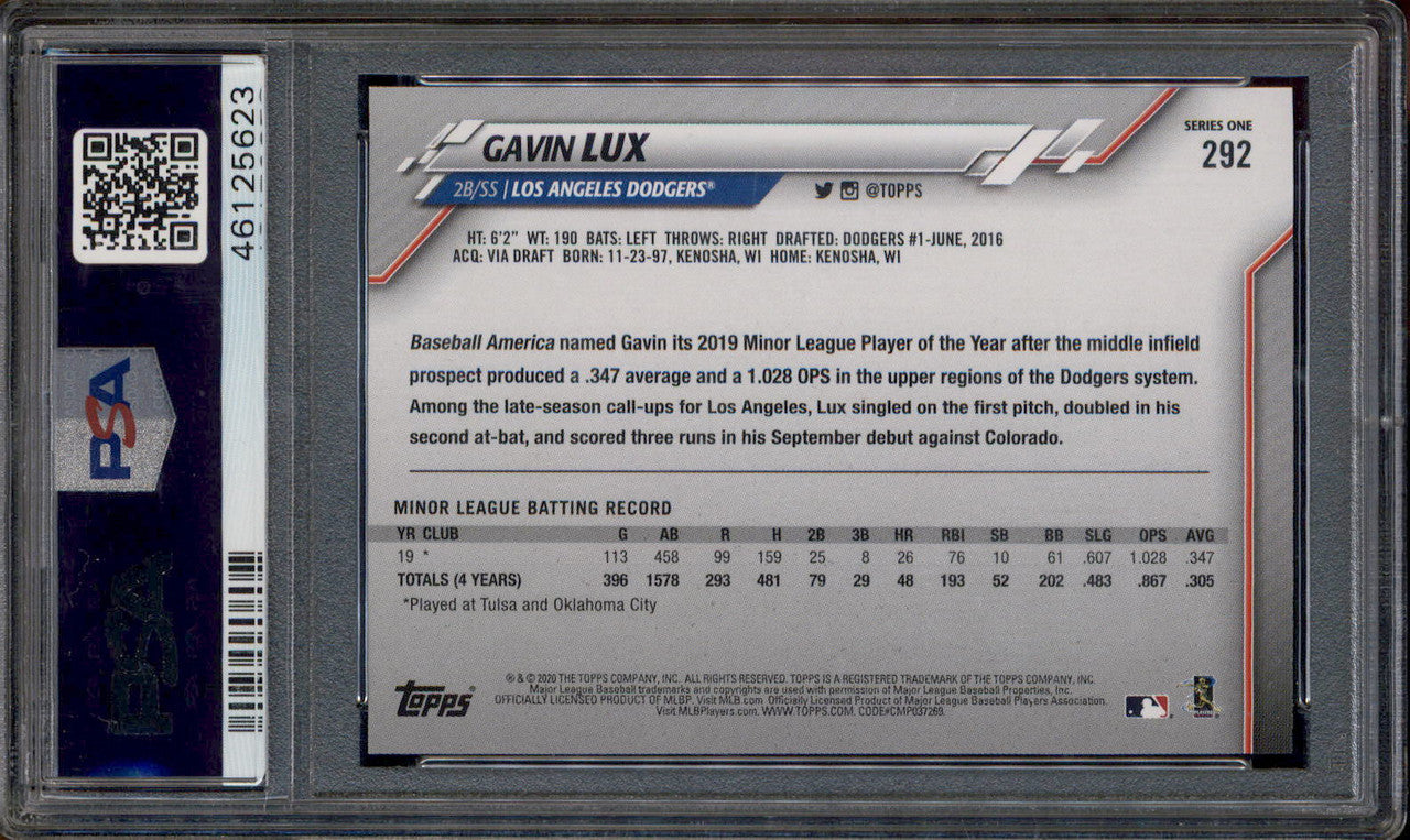 2020 Topps Wearing Helmet #292 Gavin Lux RC PSA 10