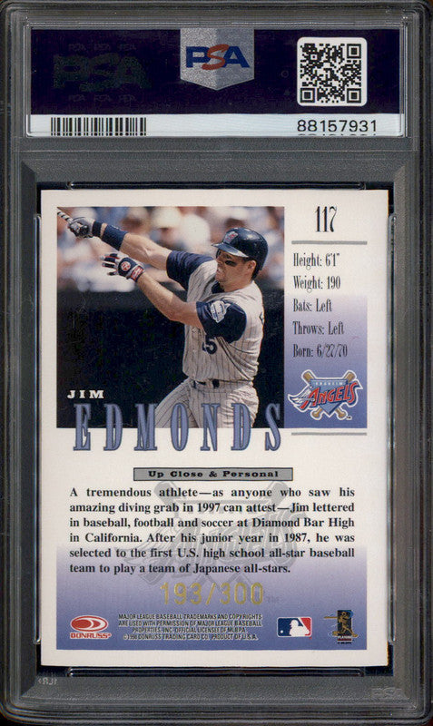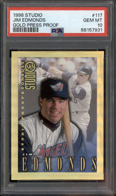 1998 Studio Gold Press Proof #117 Jim Edmonds /300 PSA 10