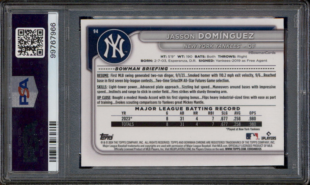 2024 Bowman Chrome SP #94 Jasson Dominguez RC PSA 10