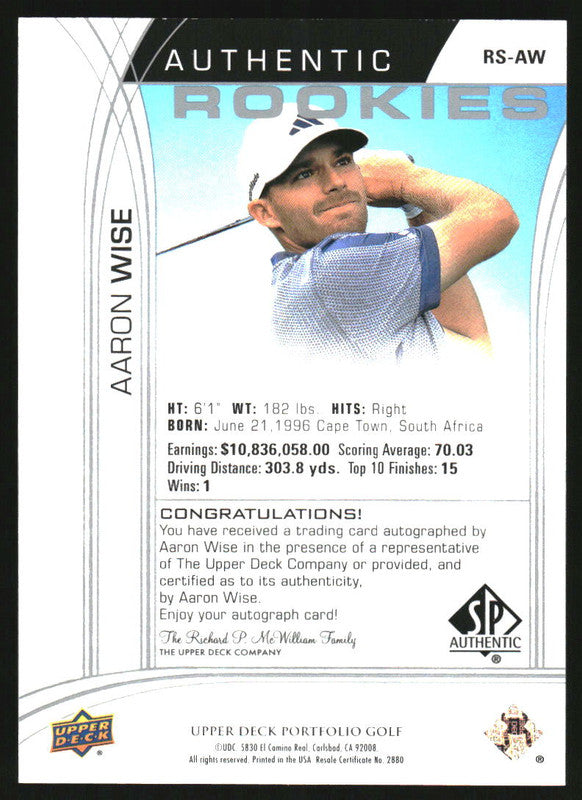 2024 Upper Deck Portfolio SP Authentic Rookies Parallel Aaron Wise Auto /299