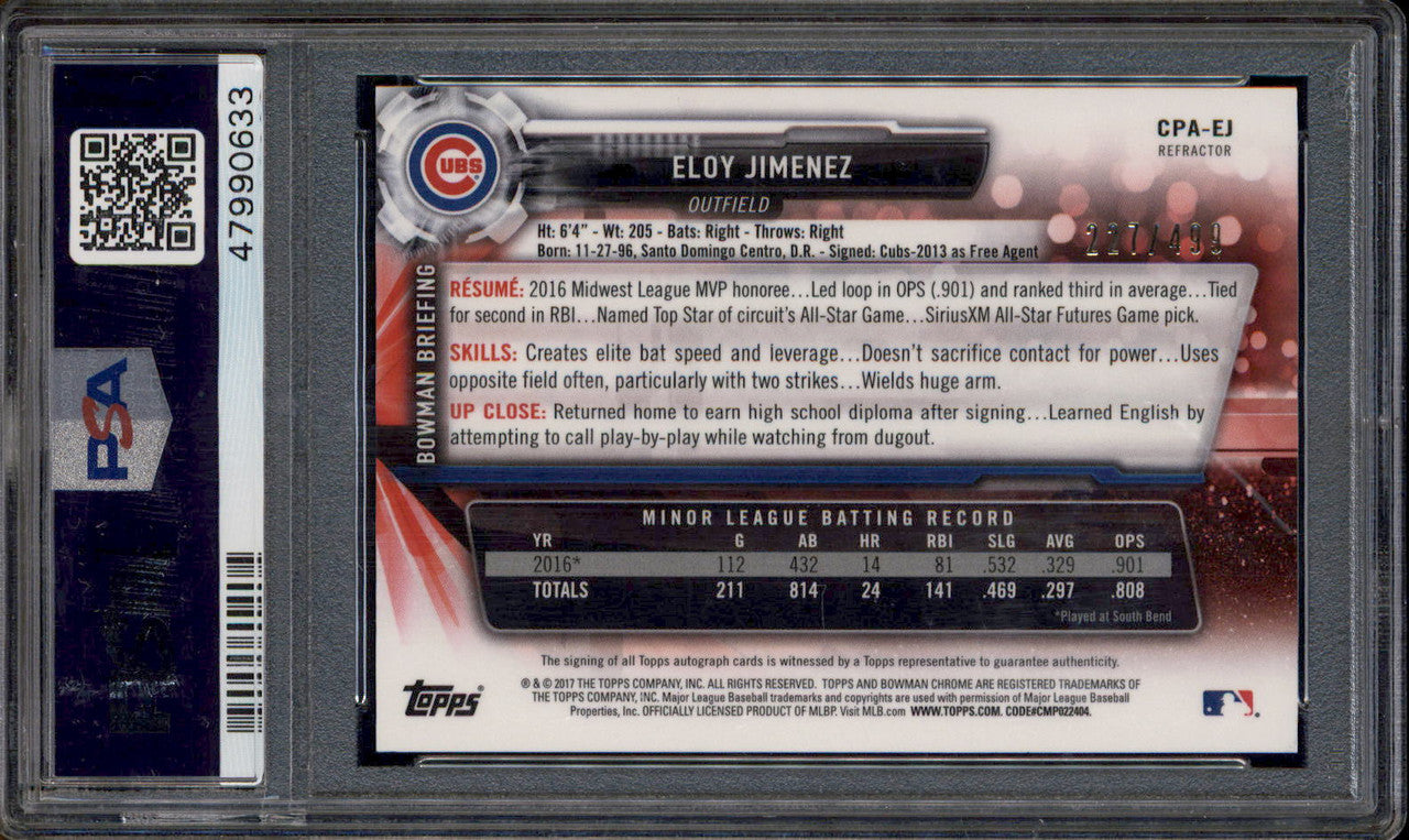 2017 Bowman Prospect Autograph Chrome Refractor #EJ Eloy Jimenez Auto /499 PSA 8