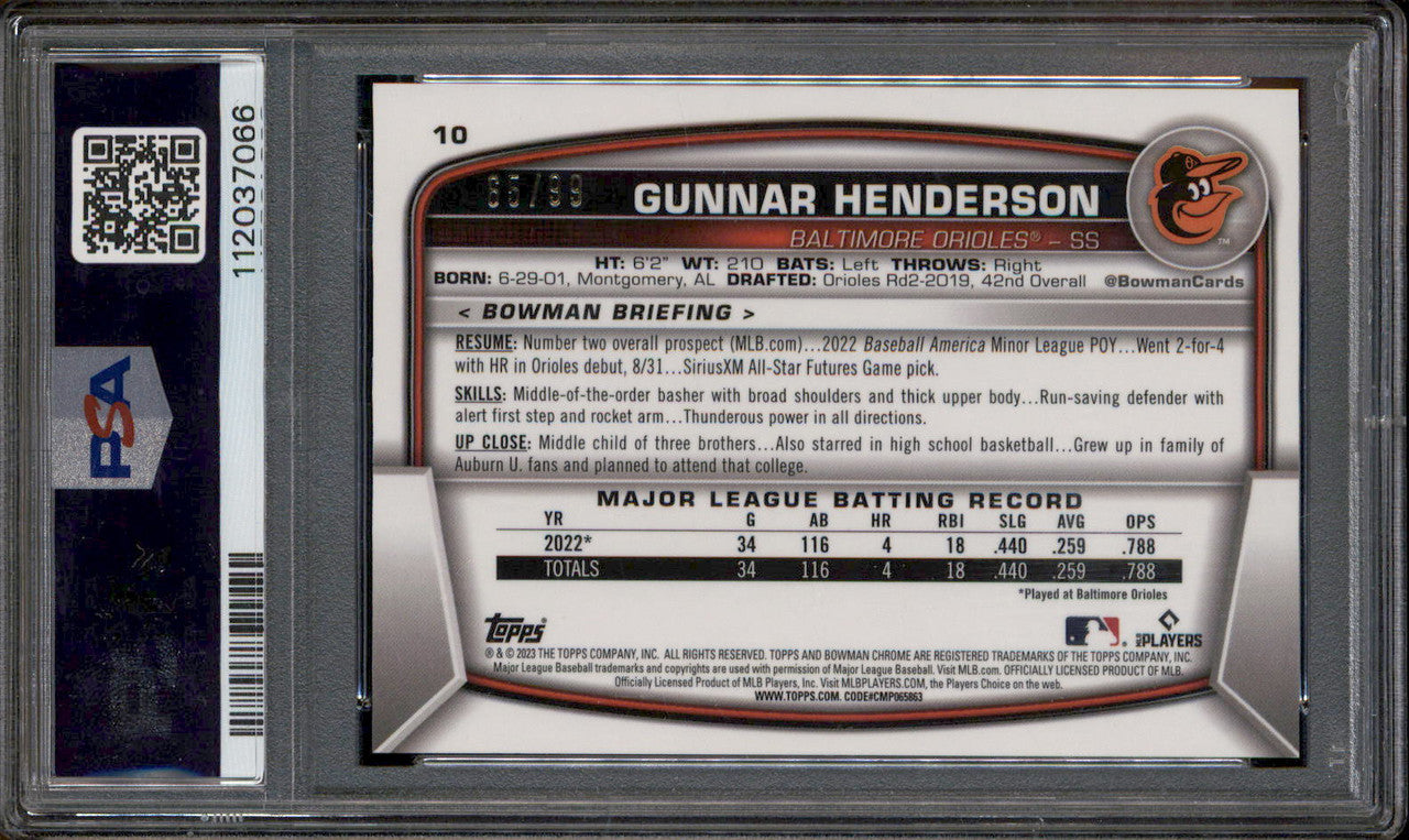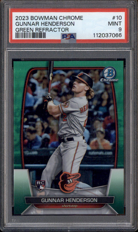 2023 Bowman Chrome Green Refractor #10 Gunnar Henderson RC /99 PSA 9
