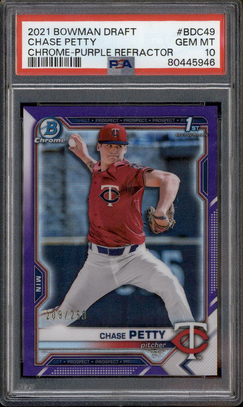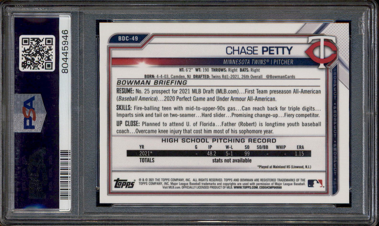 2021 Bowman Draft Chrome Purple Refractor #BDC49 Chase Petty RC /250 PSA 10