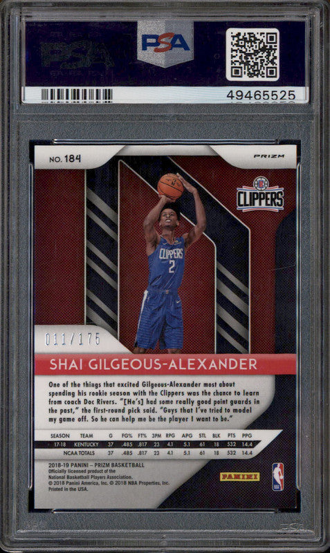 2018 Panini Prizm Fast Break Blue #184 Shai Gilgeous-Alexander RC /175 PSA 9