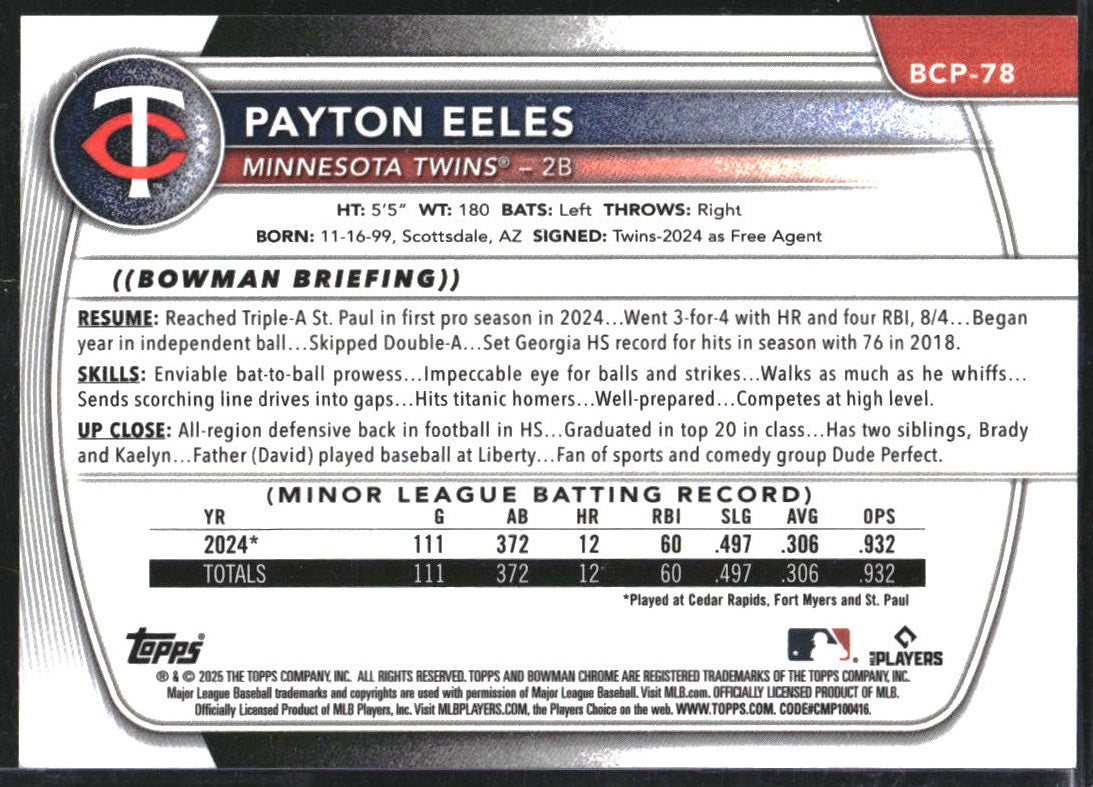2025 Bowman Chrome Black X-Fractor #BCP-78 Payton Eeles RC /10