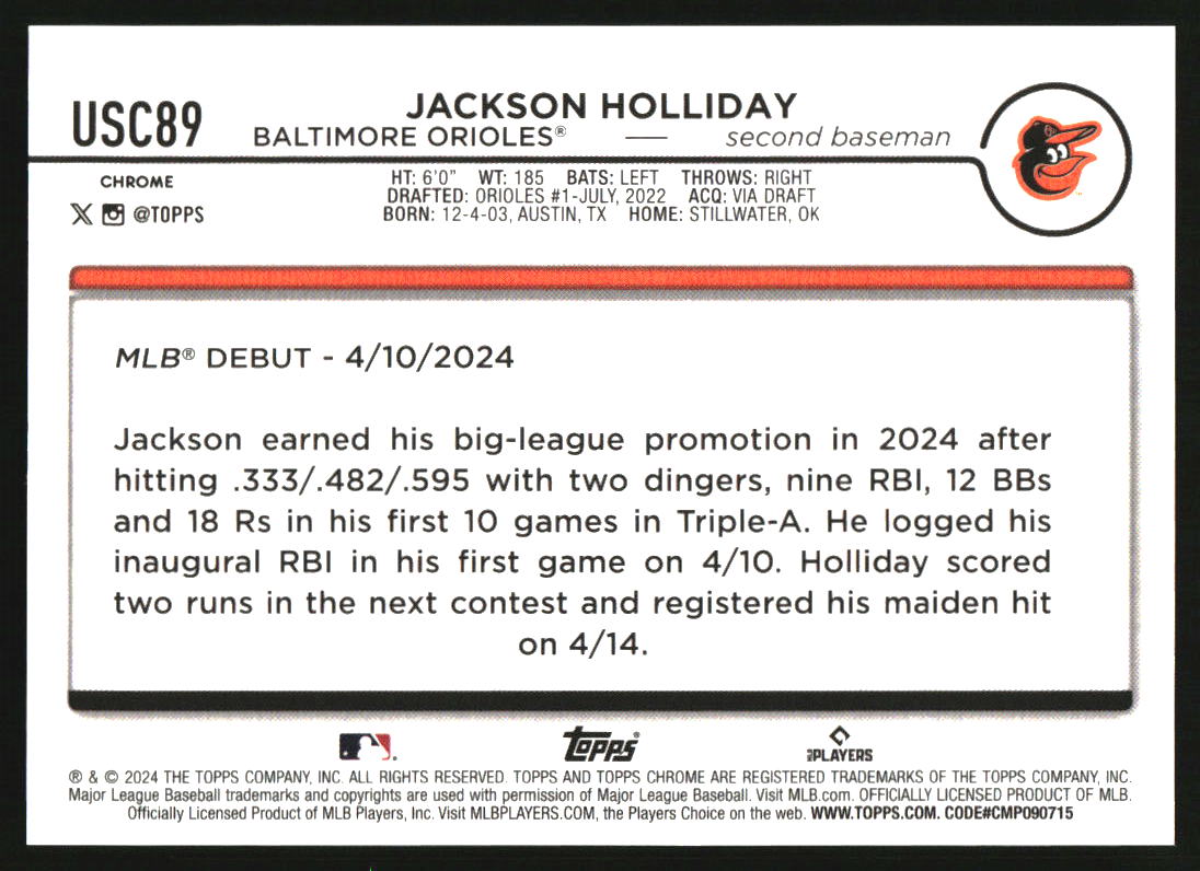 2024 Topps Chrome Update Gold RayWave Refractor #USC89 Jackson Holliday RC /50