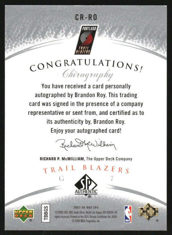 2007-08 SP Authentic Chirography #CR-RO Brandon Roy Autograph Auto