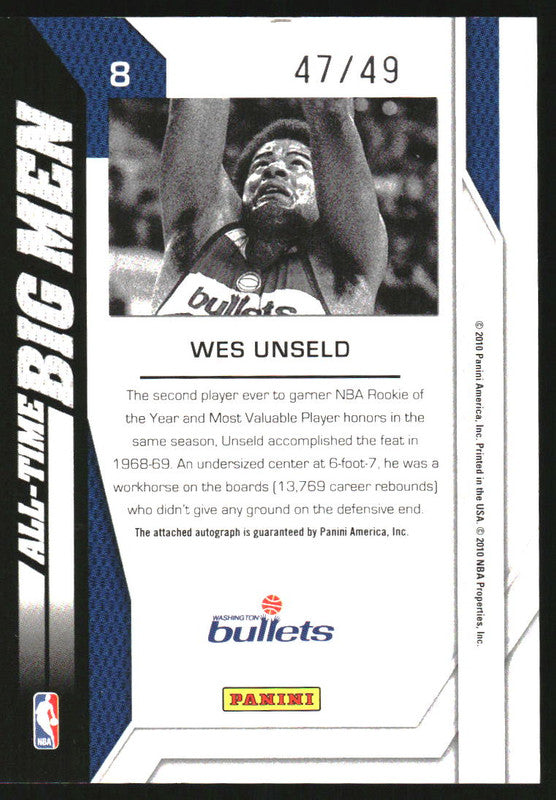 2010-11 Panini Threads All Time Big Men Autographs #8 Wes Unseld Auto /49