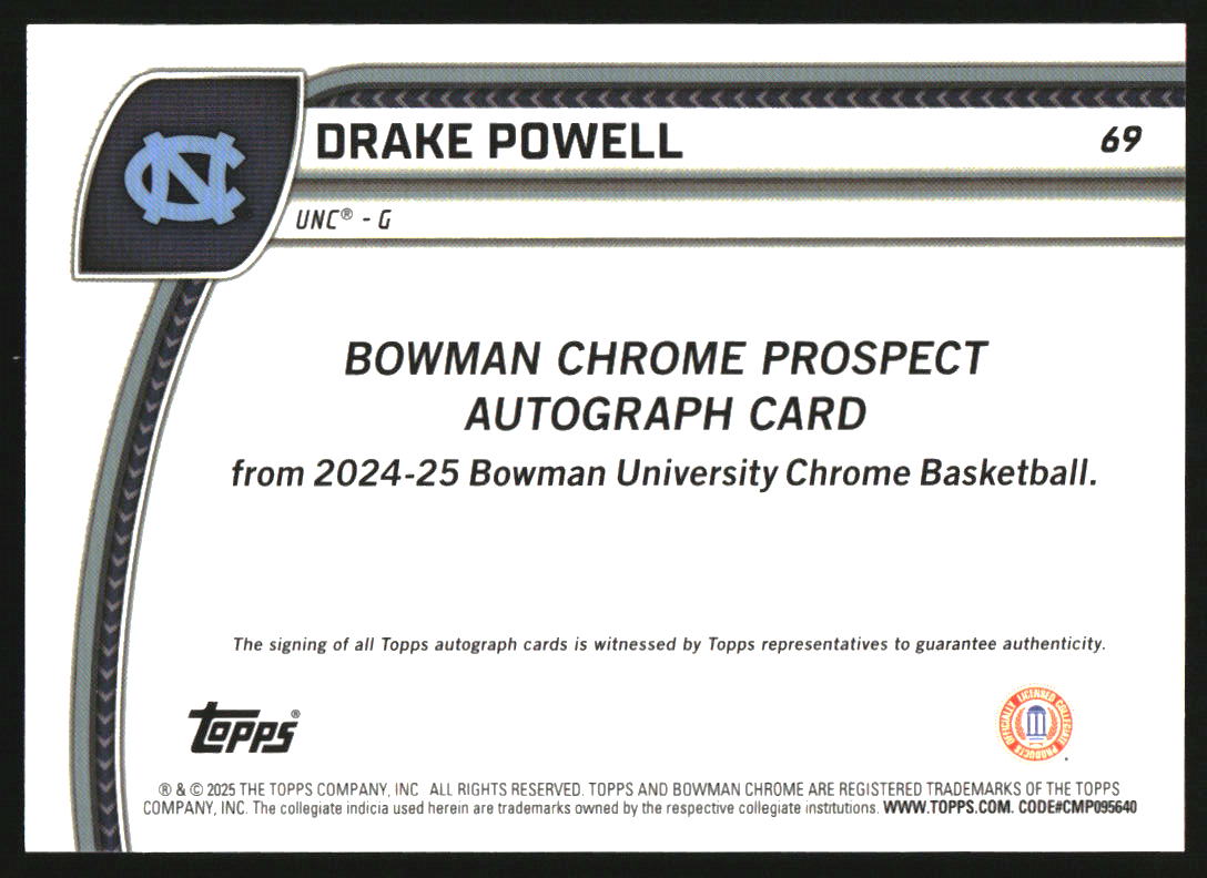 2024-25 Bowman University Chrome Reptilian Blue Refractor Drake Powell Auto /150