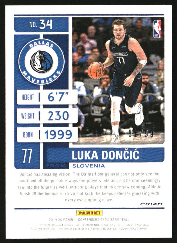 2019-20 Panini Contenders Optic Blue #34 Luka Doncic /99
