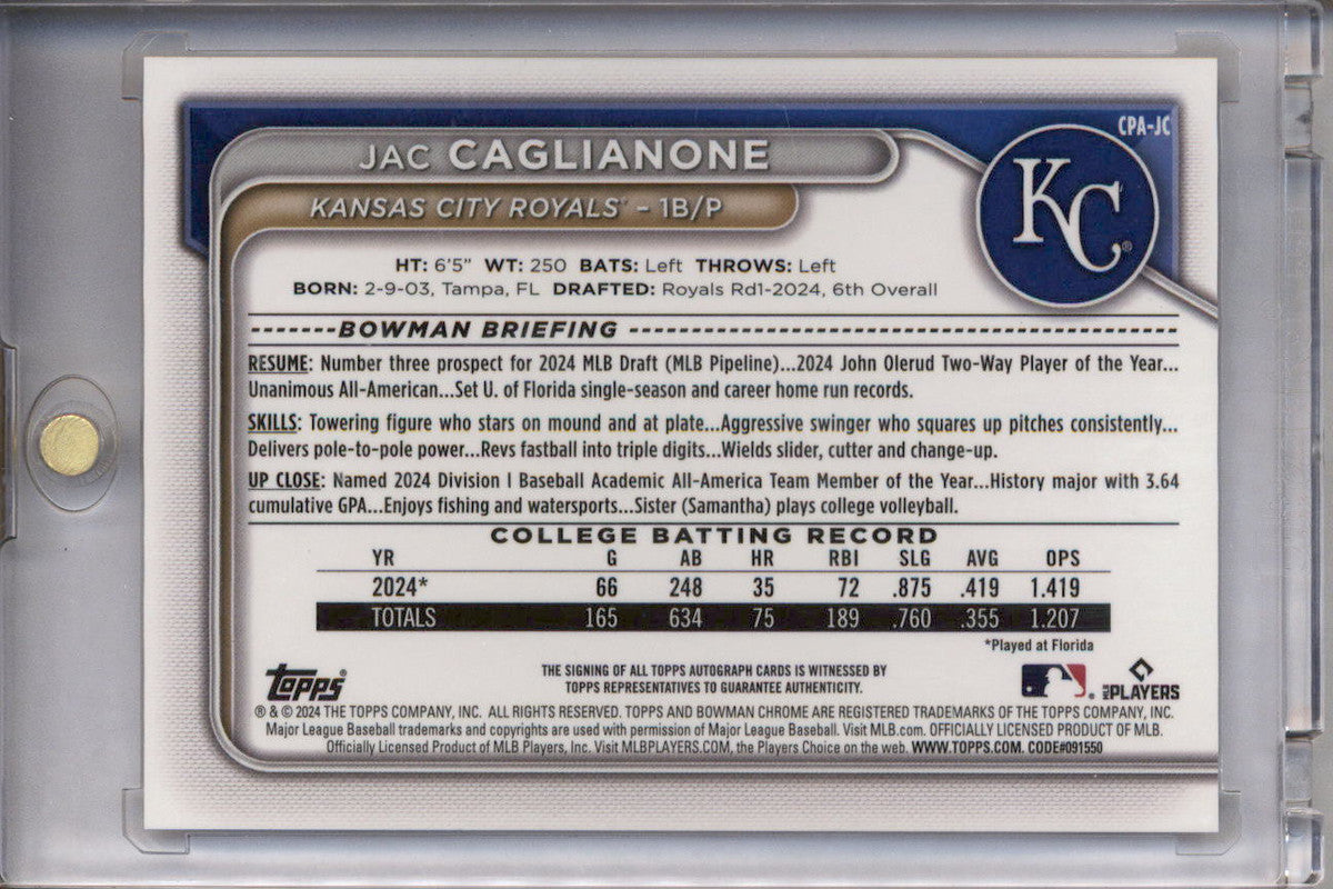 2024 Bowman Draft Chrome Autographs #CPA-JC Jac Caglianone RC Auto