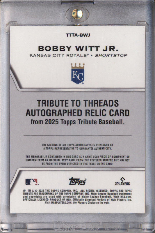 2025 Topps Tribute To Threads Autograph Relics #TTTA-BWJ Bobby Witt Jr. Auto /99