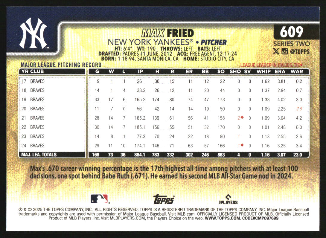 2025 Topps Golden Mirror Variation SSP #609 Max Fried