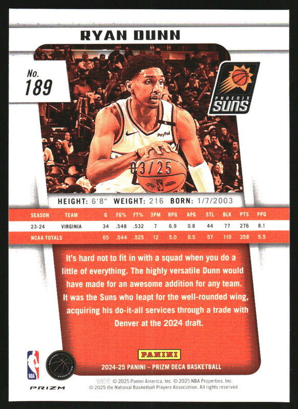2024-25 Panini Prizm Deca Mojo Prizms #189 Ryan Dunn RC /25