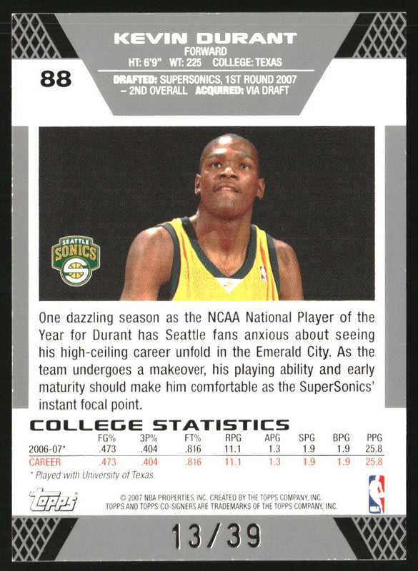 2007-08 Topps Co-Signers Silver Red Foil #88b Kevin Durant Chris Wilcox /39