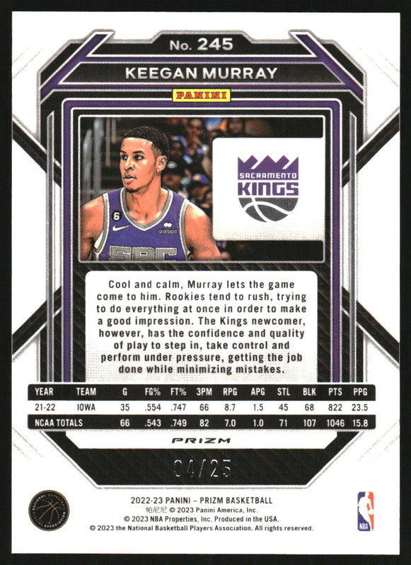 2022-23 Panini Prizm Prizms Mojo #245 Keegan Murray RC /25