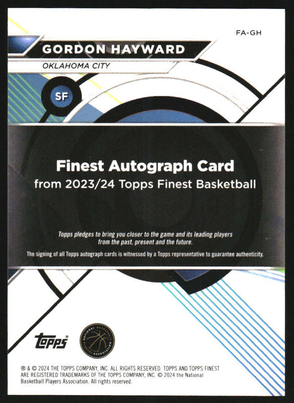 2023-24 Topps Finest Autographs Superfractor #FA-GH Gordon Hayward Auto 1/1